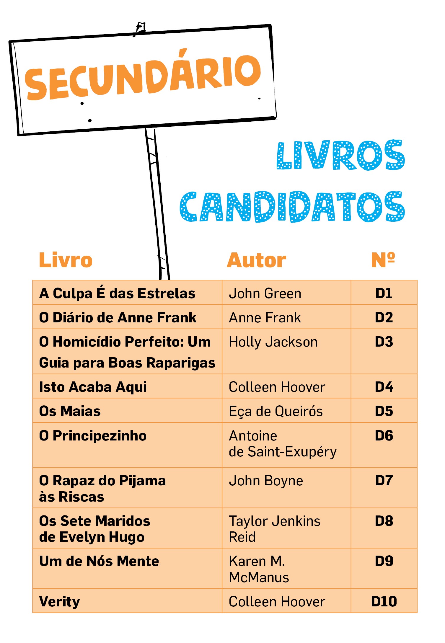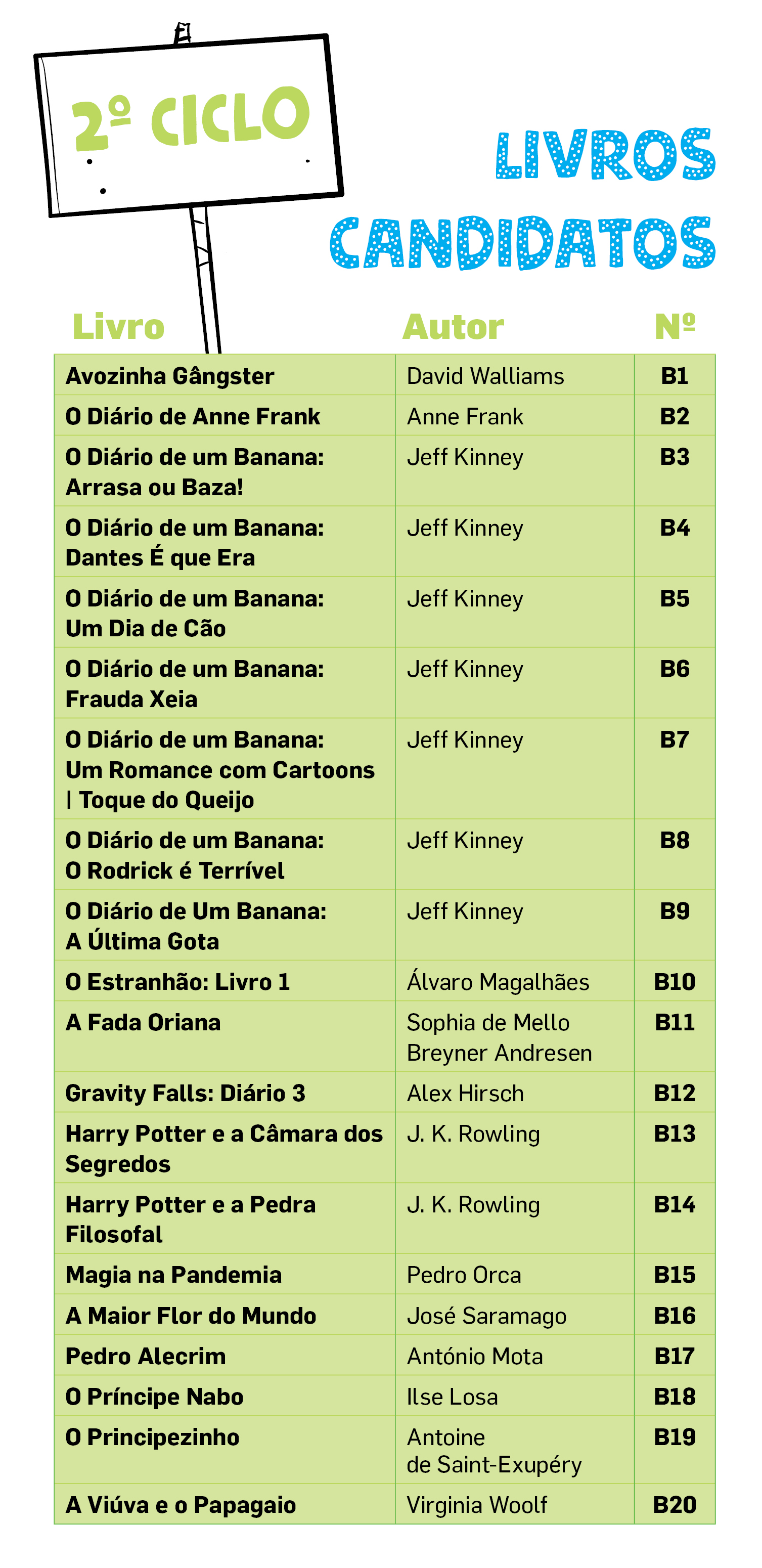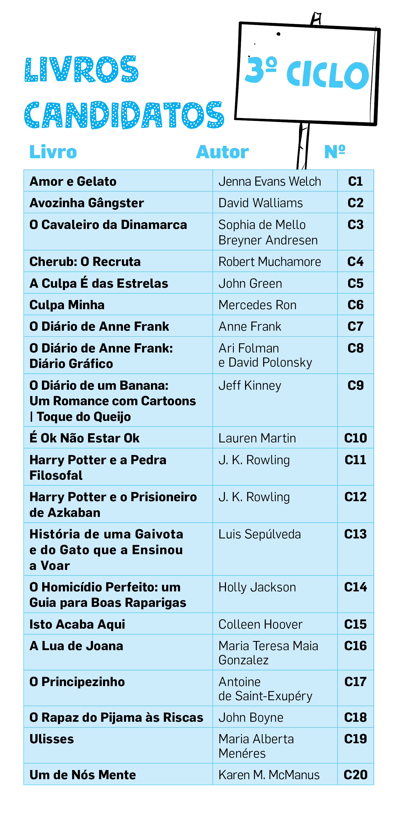 No 1º, 2º e 3º ciclos foram selecionados os 20 livros mais votados. No ensino secundário, como as propostas foram em menor número, integram a lista os 10 livros com mais nomeações.