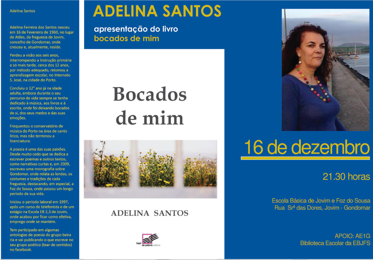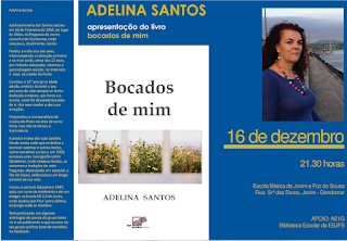 Finalmente, o poeta Carlos Lacerda, amigo da Lininha, fez a apresentação do livro "Bocados de mim". Lendo, ou dando a ler os poemas da poetisa, Carlos Lacerda delineou o retrato de Adelina Santos. "Silêncio", "Eu sou um livro", Sinto-me", "Rasgo as palavras", "Quem me dera", "Escrevo-me" foram os poemas selecionados que revelaram uma pessoa que transmite, através da sua escrita, uma mensagem de quem está na vida com "dignidade, simplicidade e verdade".